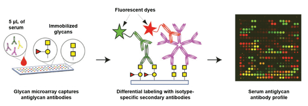 GlycoUniverse offers Glycan Microarray service to help researchers to screen glycan-binding interactions. Our exclusive and built-to-order library of Glycan Standards includes diverse oligosaccharide sequences of mammalian glycoproteins, glycolipids, glycosaminoglycans as well as those from bacterial, fungal and plant polysaccharides. Broad-spectrum and focused arrays, including Lectin arrays, Mucin arrays, Siglec ligands arrays, Human-milk oligosaccharide (HMO) arrays, Tumor-associated carbohydrate antigens (TACAs) arrays, can be screened in parallel.